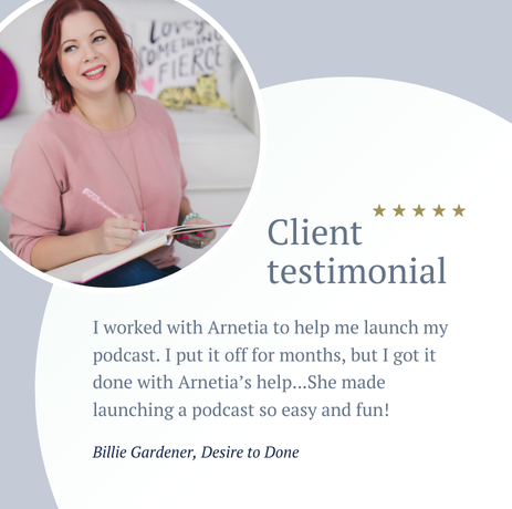 She always knows new tools that are coming up and is great at teaching me how to use them. Her attention to the detail is beyond. Everything was done to perfection all the time. Arnetia was always on time, always high quality work, great communication, and really just helped to improve all of the processes inside my podcast. So I just really, really appreciate her. She’s a delight to know. She’s a leader. She’s not just like a basic VA. She’s above and beyond. So if you could have Arnetia in your business, you need to have her in your business because she brings so much value and commitment“. Sharon Nissen, Director of Communications